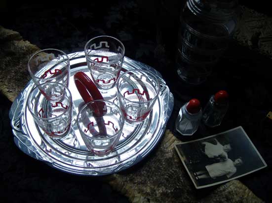 DSCN2314ファイヤーキング:デミタスカップ&ソーサー/ヴィンテージグラス:パウダージャー/ボールジャー/リビーグラス:デキャンタ